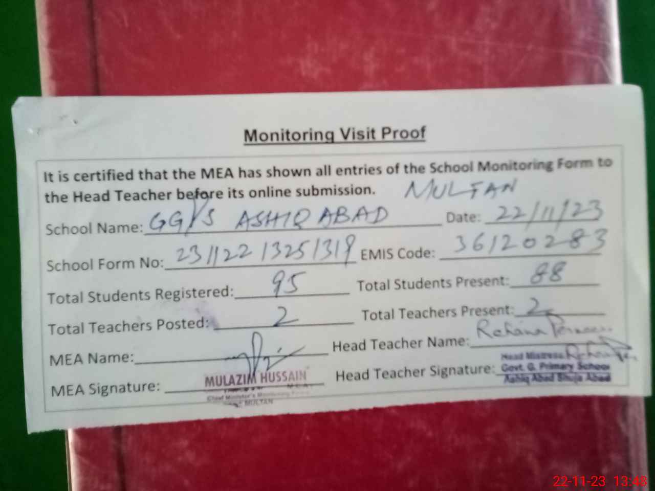 | EMIS Code: 36120283 | Name of School: GGPS ASHIQ ABAD SHUJABAD | |||
