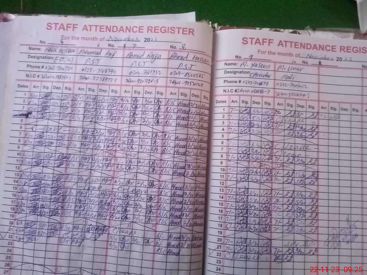 | CNIC | Full Name | Designation | R/C | Absence during last cal. month |
