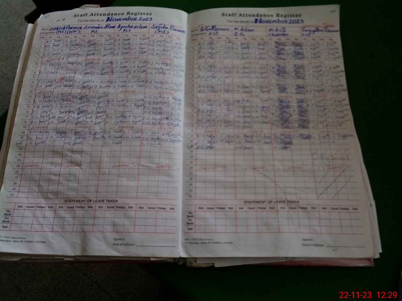 | CNIC | Full Name | Designation | R/C | Absence During Last Calender Month |