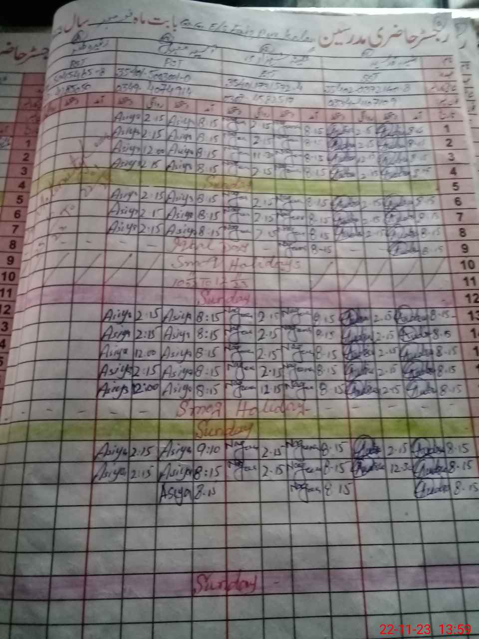 | Name: Sa**** Sh**** Designation: (School Headmaster's/Headmistress's) Est Phone/Cell Number: 03**** |