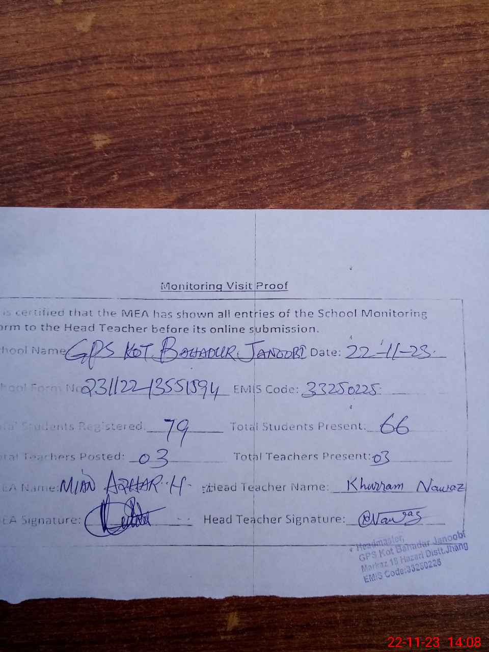 | EMIS Code: 33250225 | Name of School: GPS KOT BAHADAR JANOOBI | |||