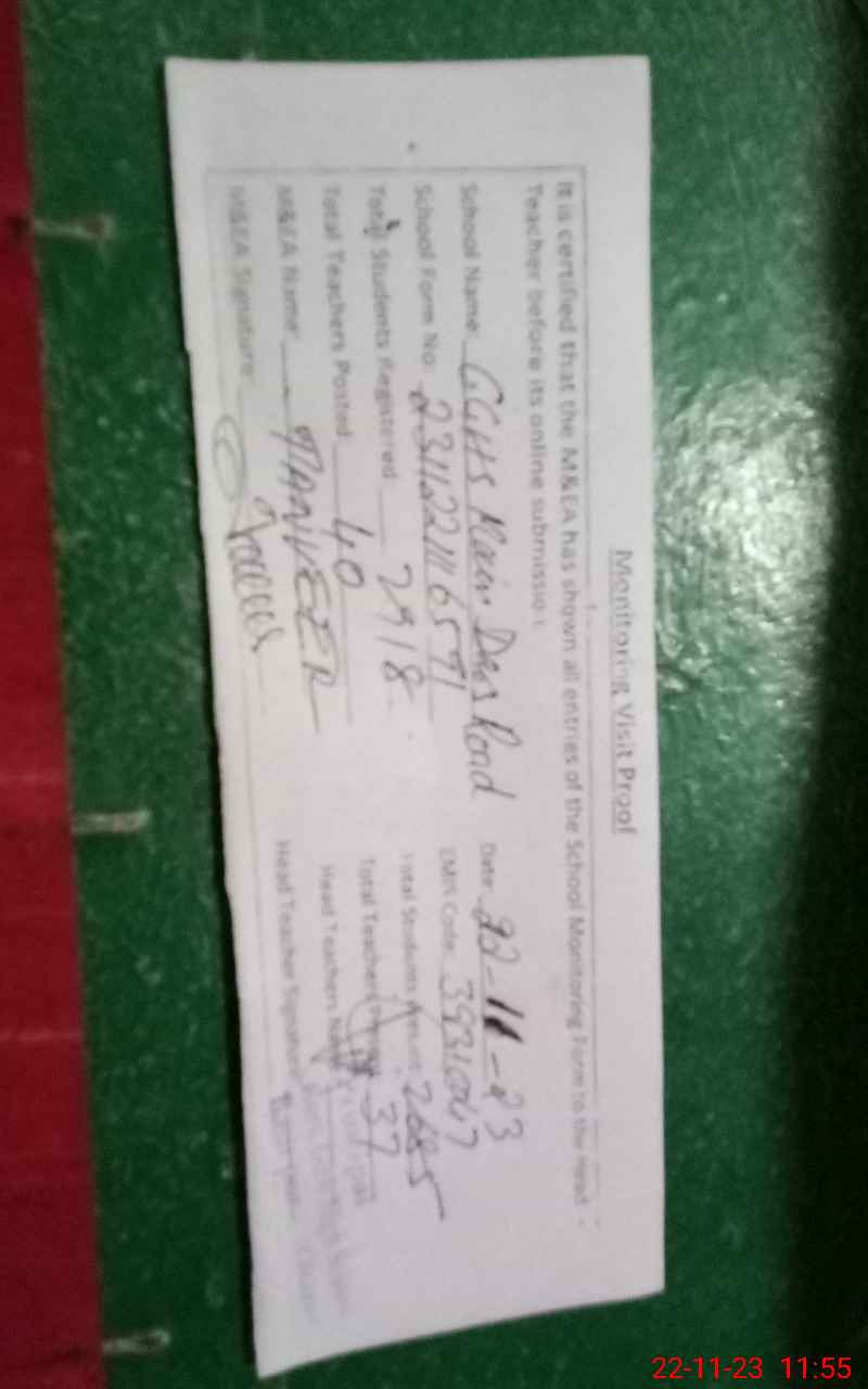 | EMIS Code: 39310047 | Name of School: GGHS MAIN DARS ROAD BASIR PUR | |||