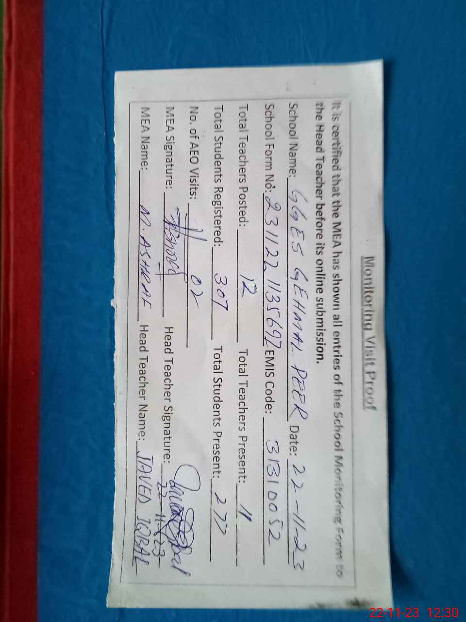 | EMIS Code: 31310052 | Name of School: GES GEHMAL PEER | |||