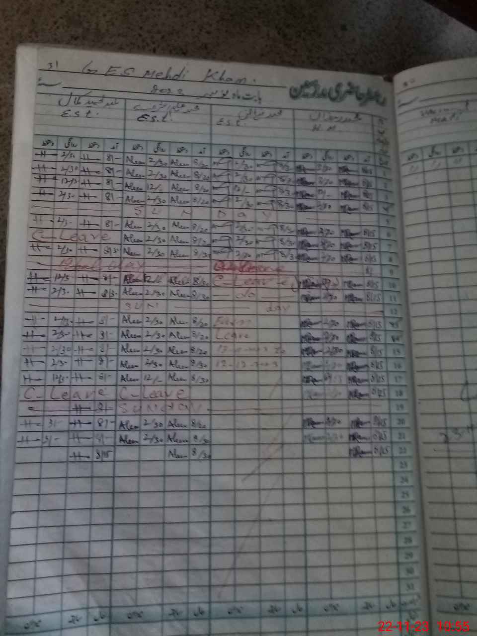 | CNIC | Full Name | Designation | R/C | Absence During Last Calender Month |