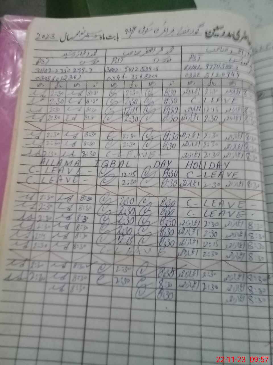 | CNIC | Full Name | Designation | R/C | Absence During Last Calender Month |