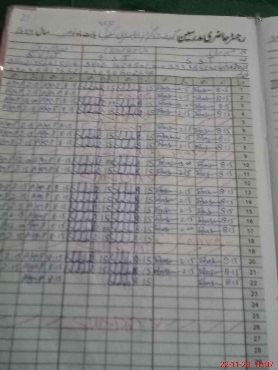| CNIC | Full Name | Designation | R/C | Absence During Last Calender Month |