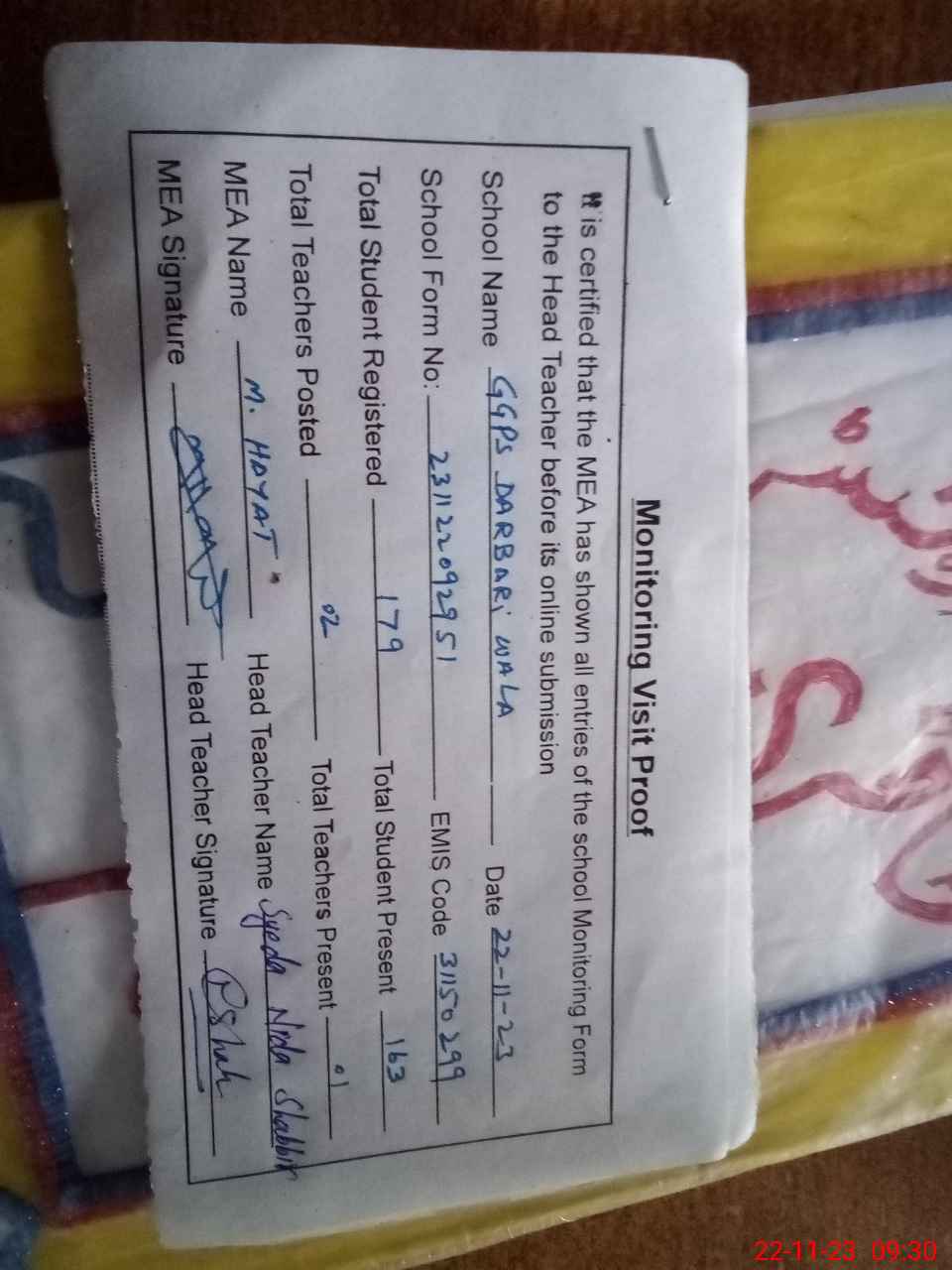 | EMIS Code: 31150299 | Name of School: GMPS DARBARI WALA | |||