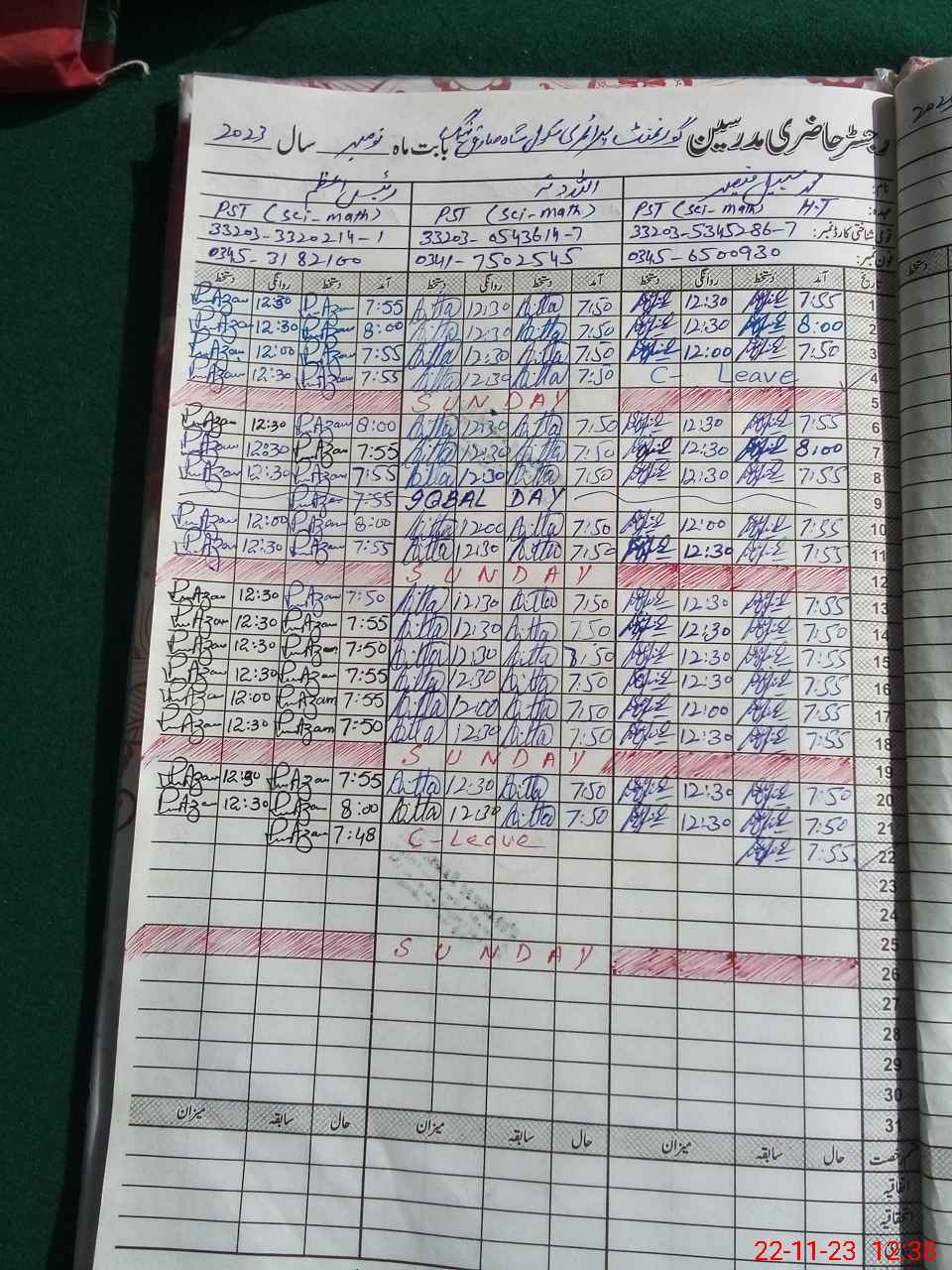| CNIC | Full Name | Designation | R/C | Absence During Last Calender Month |