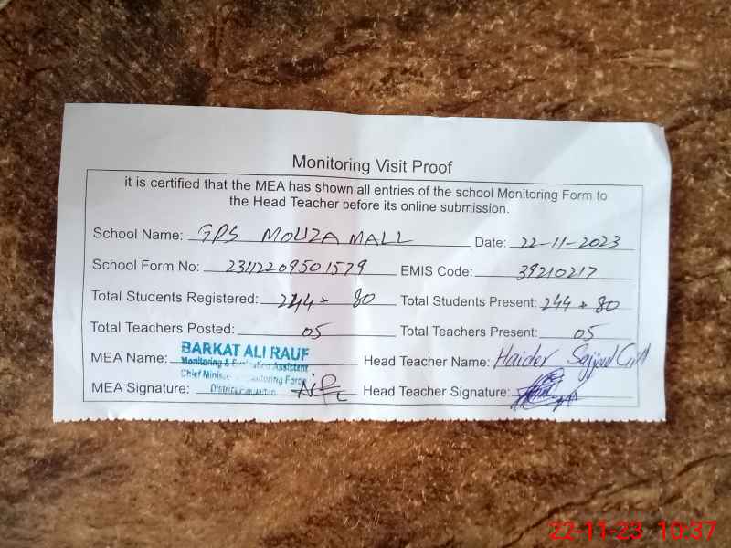 | EMIS Code: 39210217 | Name of School: GPS MOUZA MALL | |||