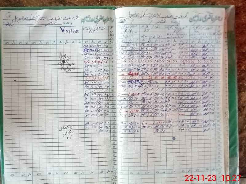 | CNIC | Full Name | Designation | R/C | Absence During Last Calender Month |