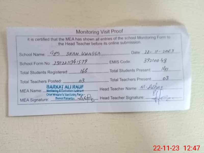 | EMIS Code: 39210048 | Name of School: GES SHAH KHAGGA PAKPATTAN | |||