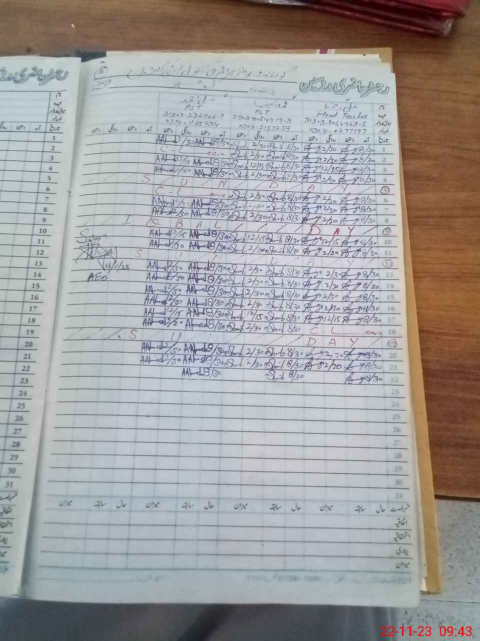 | CNIC | Full Name | Designation | R/C | Absence During Last Calender Month |