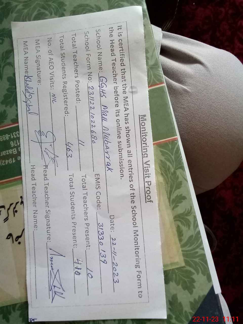 | EMIS Code: 31330139 | Name of School: GGHS MAU MUBARAK | |||