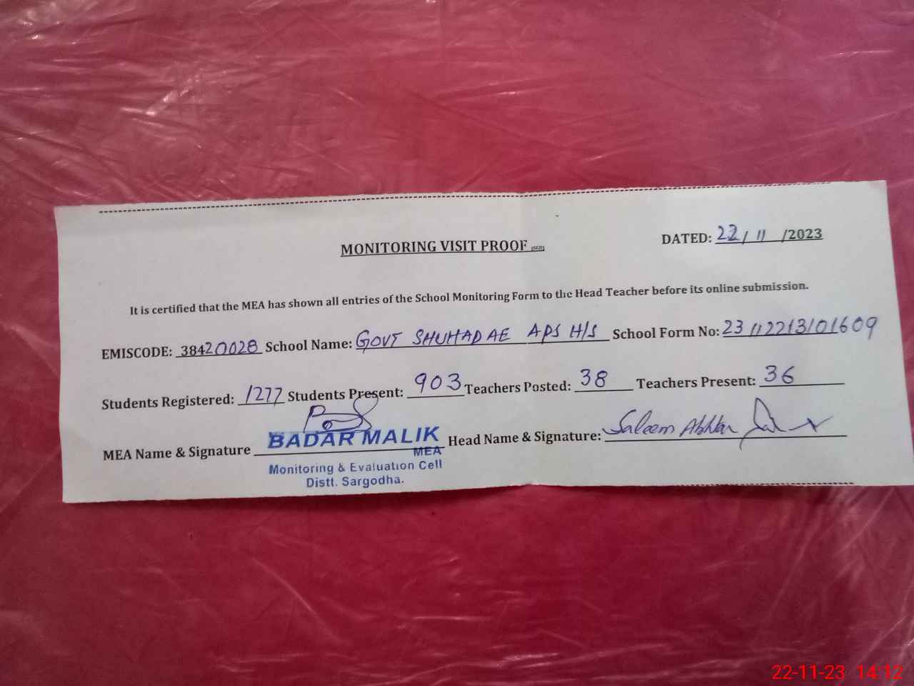 | EMIS Code: 38420028 | Name of School: Govt. Shuhada-e-APS Memorial High School Sgd | |||