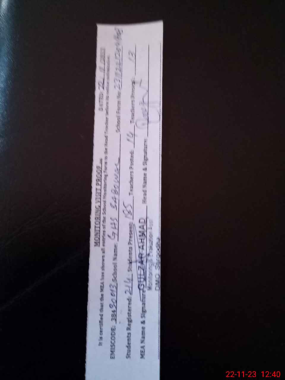 | Certified that this School was Inspected by the Undersigned MEA/DMO Today and the Information Stated Above is as Per Record. | |||||