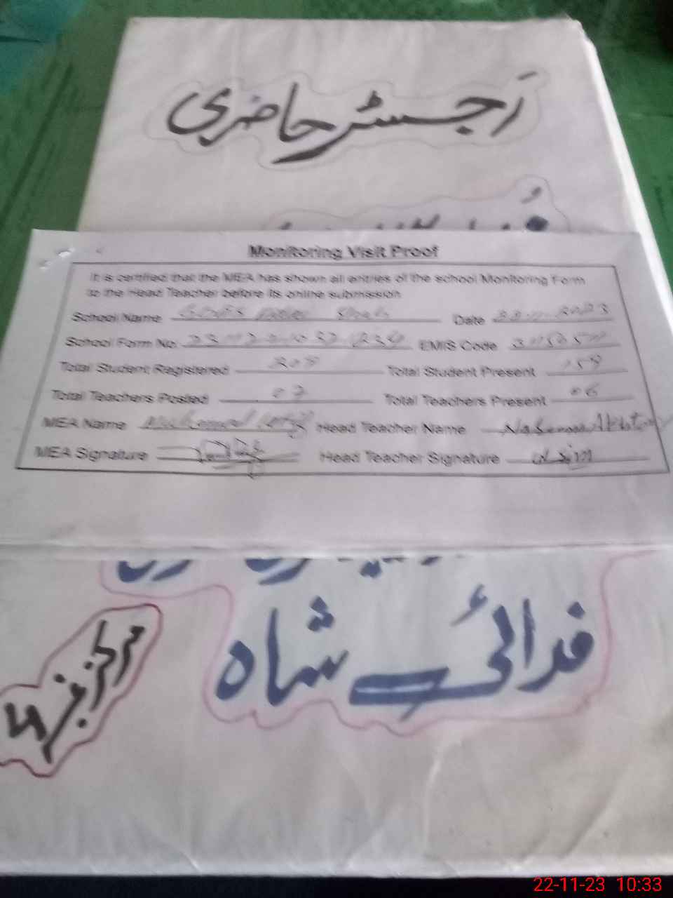 | Attendance Register | Head Teacher | MEA with School | Visit Proof |