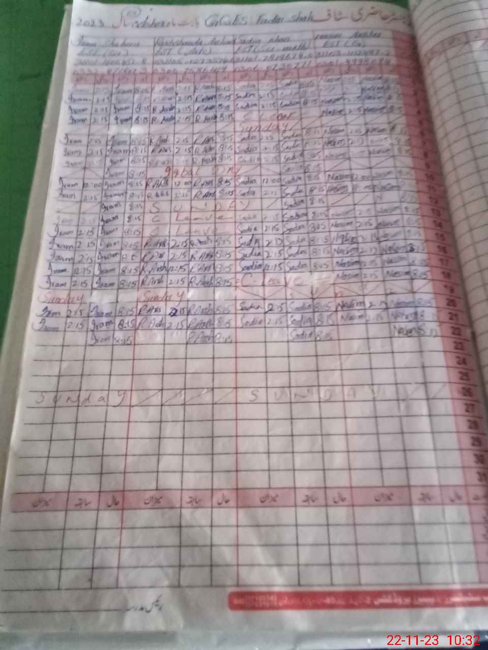 | CNIC | Full Name | Designation | R/C | Absence During Last Calender Month |