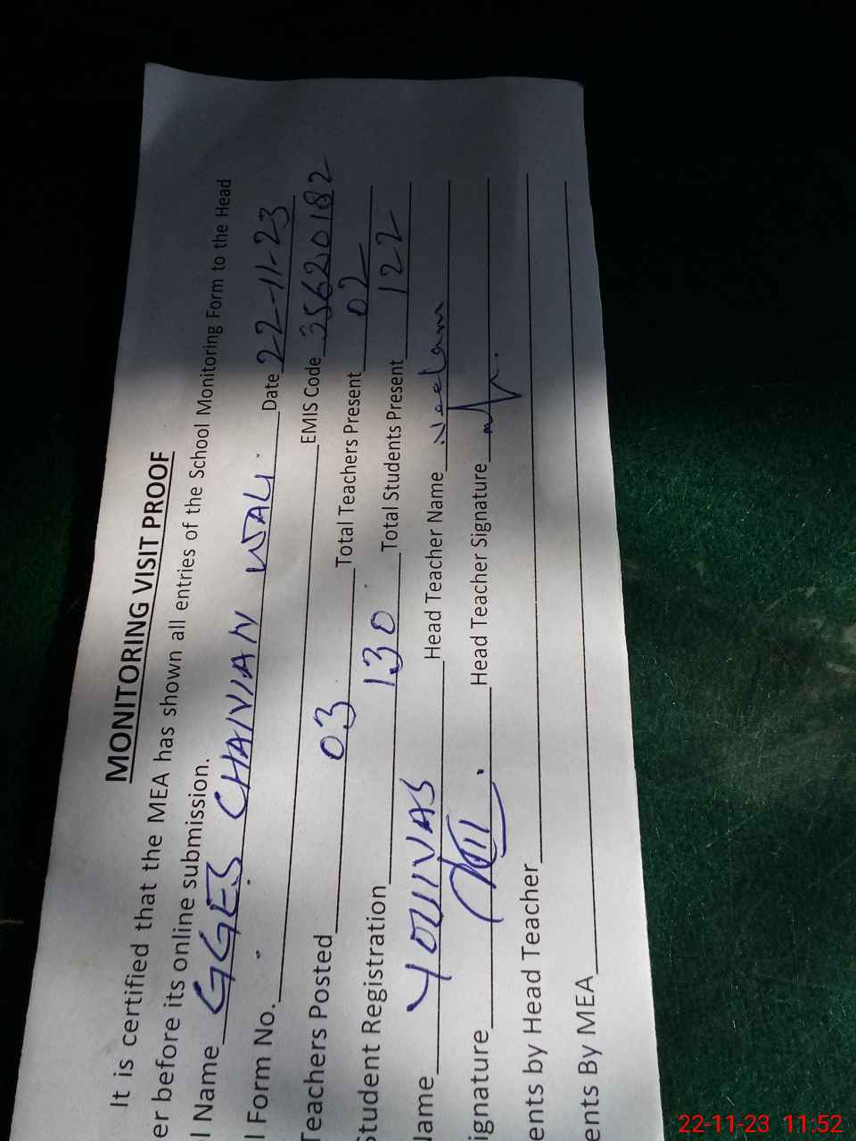| EMIS Code: 35620182 | Name of School: GGES CHANIAN WALI | |||