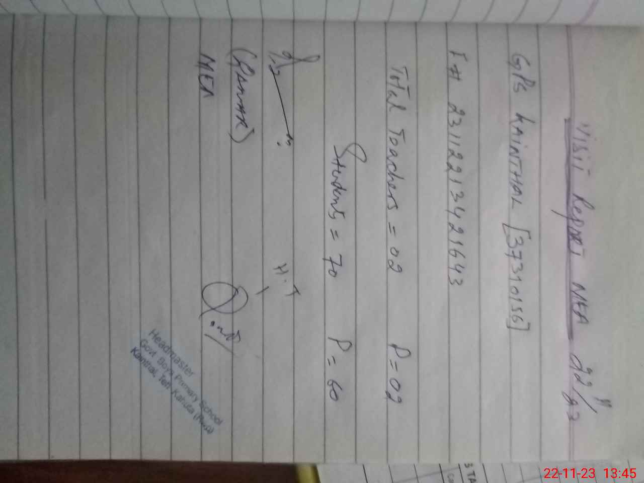 | Attendance Register | Head Teacher | MEA with School | Visit Proof |