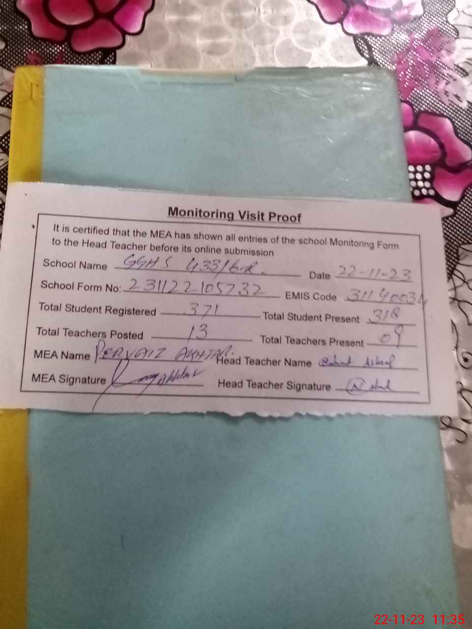 | EMIS Code: 31140034 | Name of School: GGHS CHAK NO.433/6-R | |||