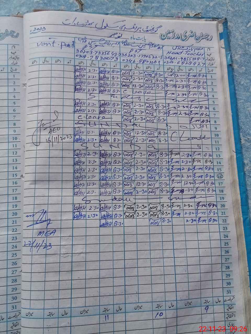 | Attendance Register | Head Teacher | MEA with School | Visit Proof |