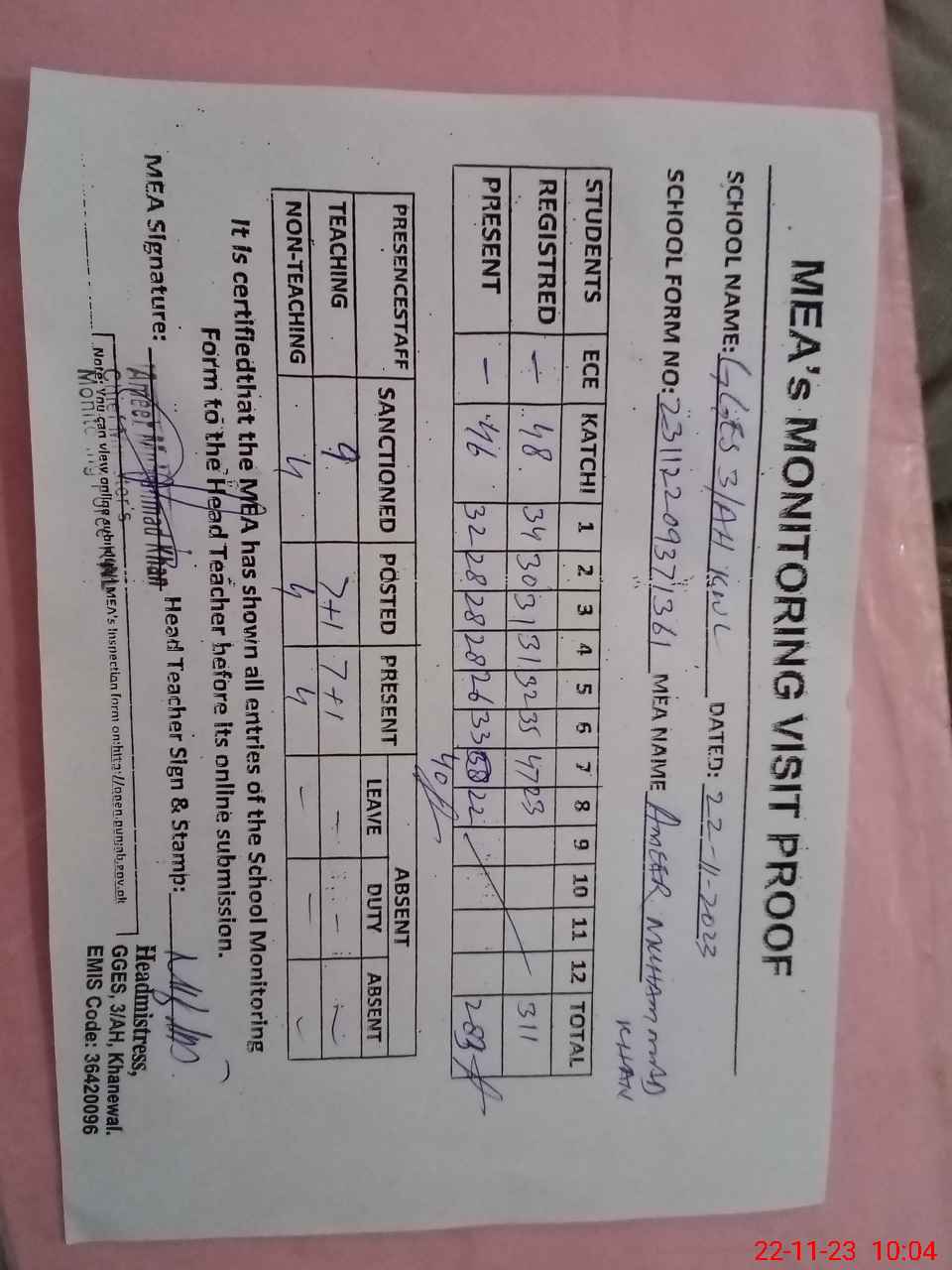 | EMIS Code: 36420096 | Name of School: GGES 3/AH, KHANEWAL | |||