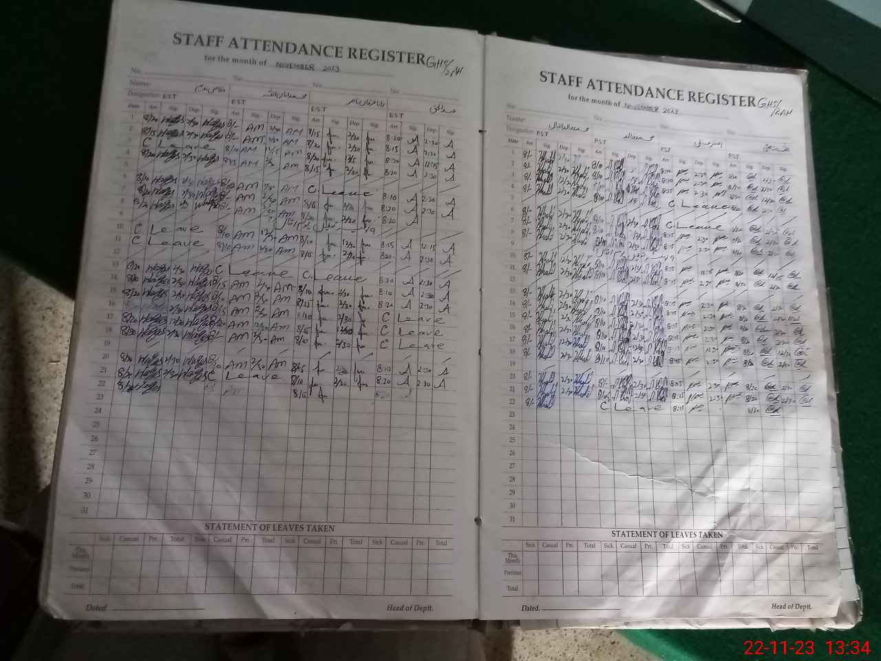 | CNIC | Full Name | Designation | R/C | Absence During Last Calender Month |
