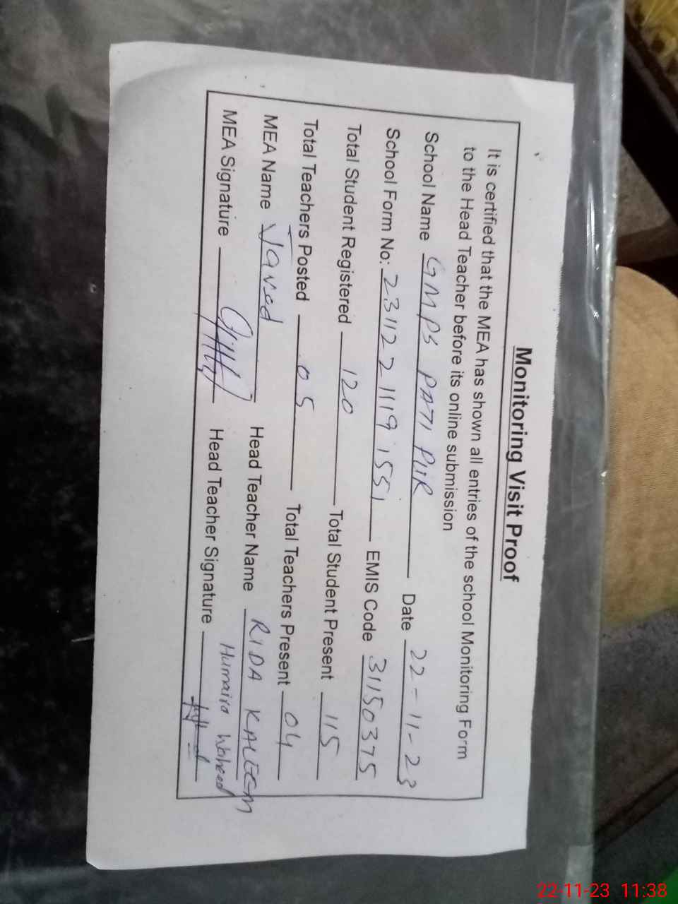 | EMIS Code: 31150375 | Name of School: GMPS PATTI PUR | |||