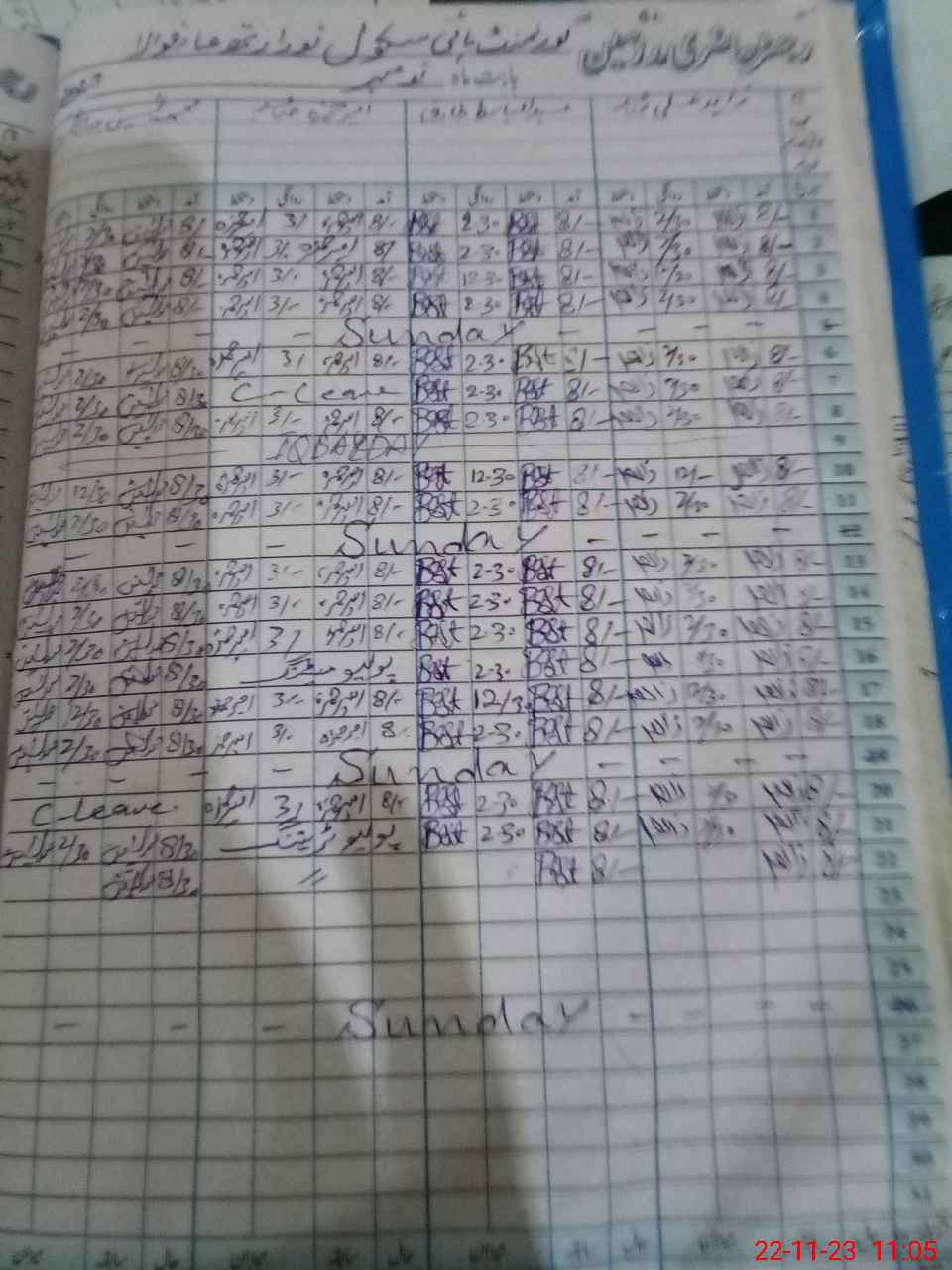 | CNIC | Full Name | Designation | R/C | Absence During Last Calender Month |