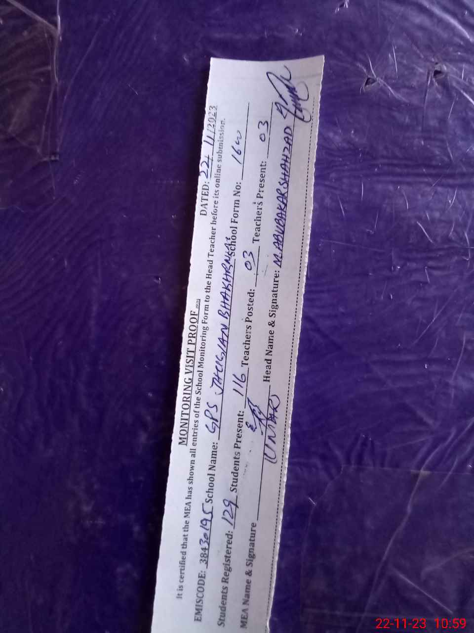 | EMIS Code: 38430195 | Name of School: GPS JUGHIAN BHAKHANIAN | |||