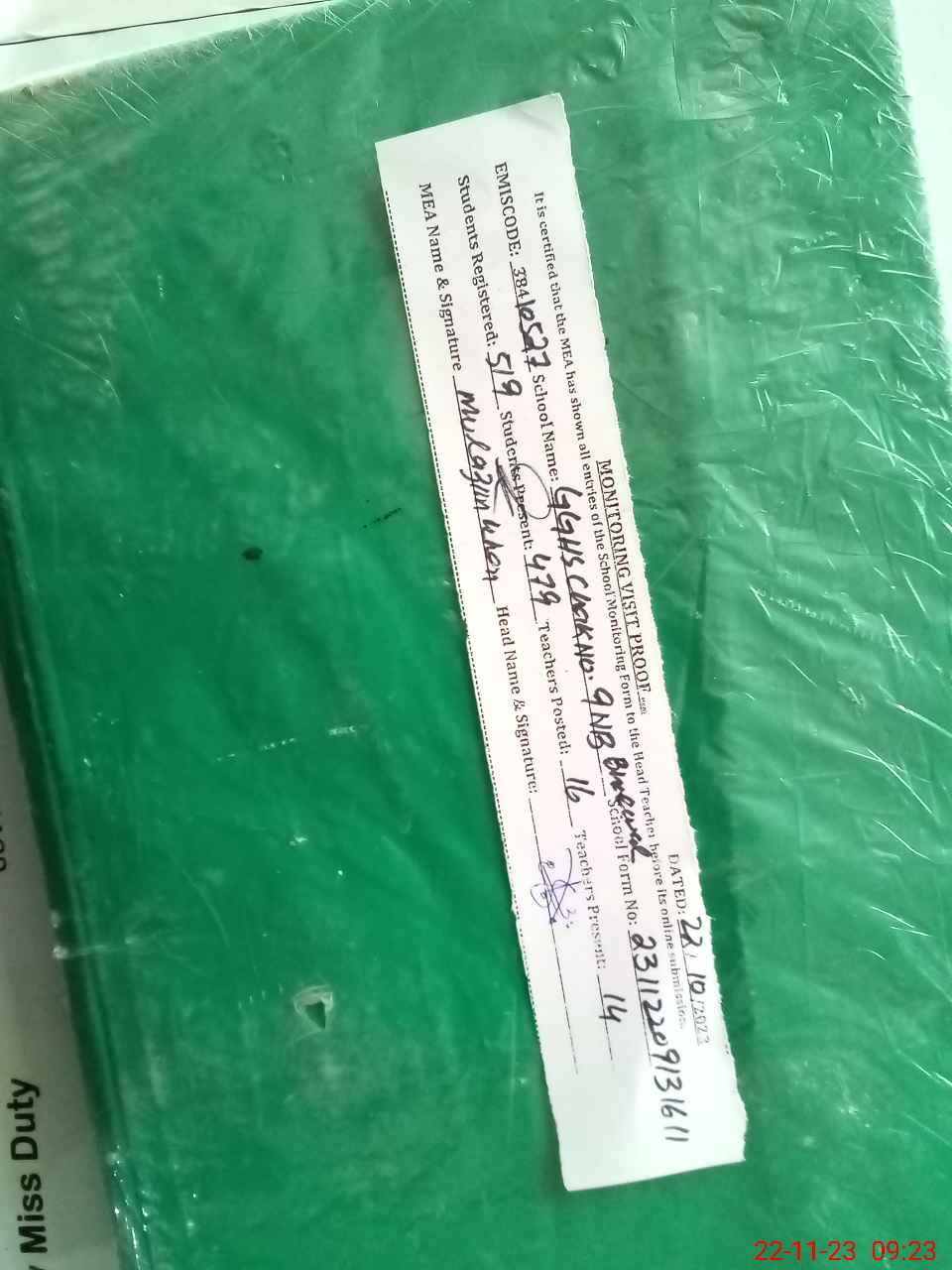 | EMIS Code: 38410527 | Name of School: GGHS CHAK NO.9 NB | |||