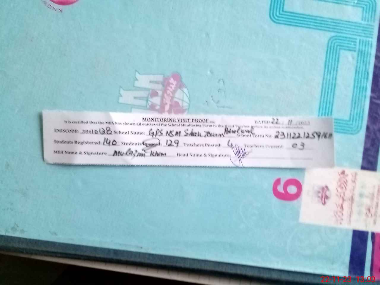 | Attendance Register | Head Teacher | MEA with School | Visit Proof |