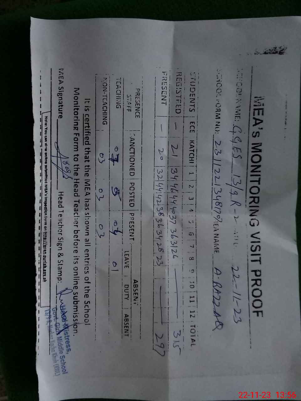 | EMIS Code: 36420122 | Name of School: GGES 13/9-R NO.2, KACHA KHUH | |||