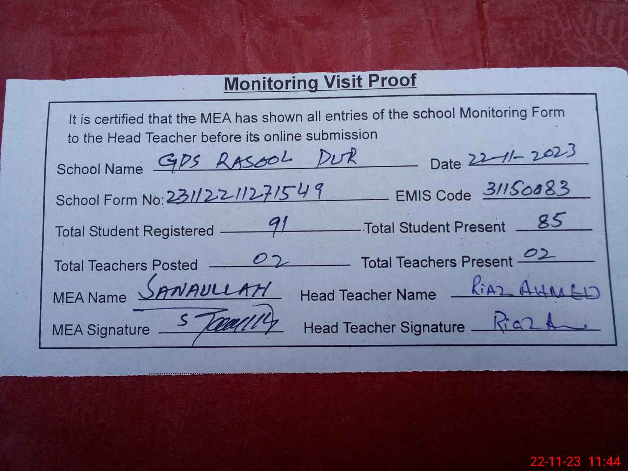 | EMIS Code: 31150083 | Name of School: GPS RASOOL PUR | |||