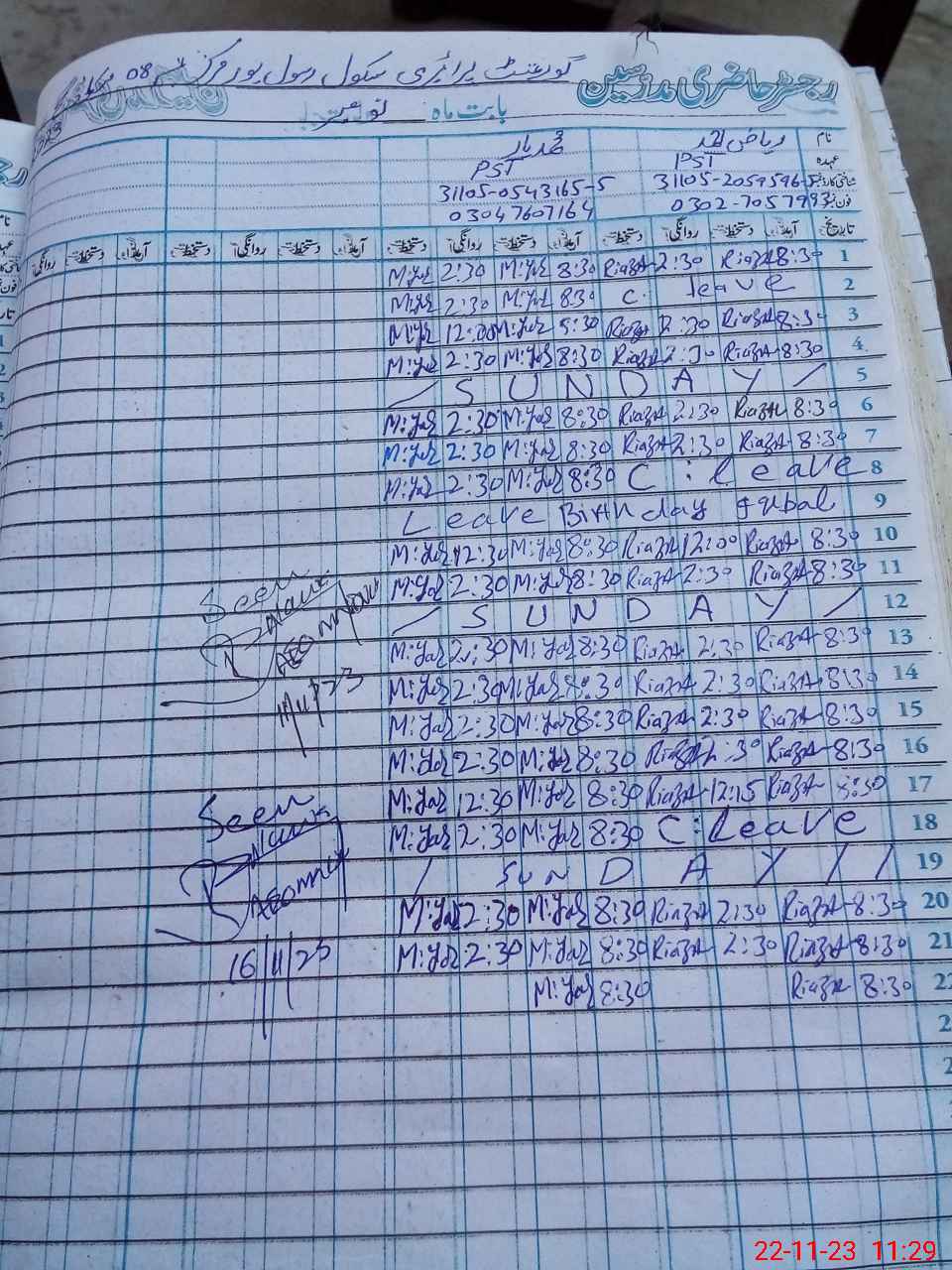 | Name: RI**** AH**** Designation: (School Headmaster's/Headmistress's) ESE SCI Phone/Cell Number: 03**** |