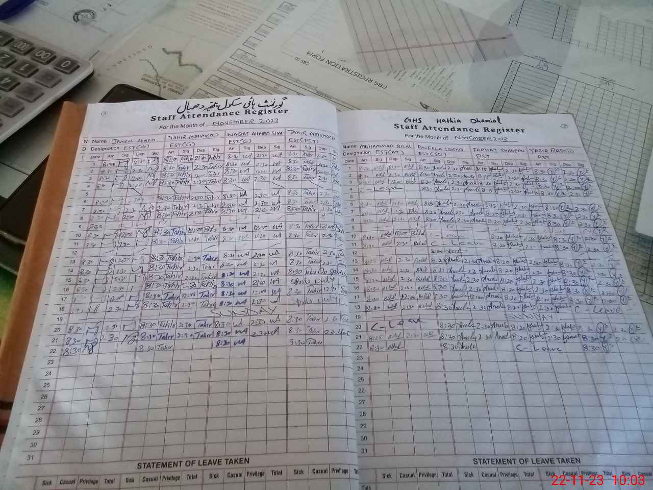 | CNIC | Full Name | Designation | R/C | Absence During Last Calender Month |