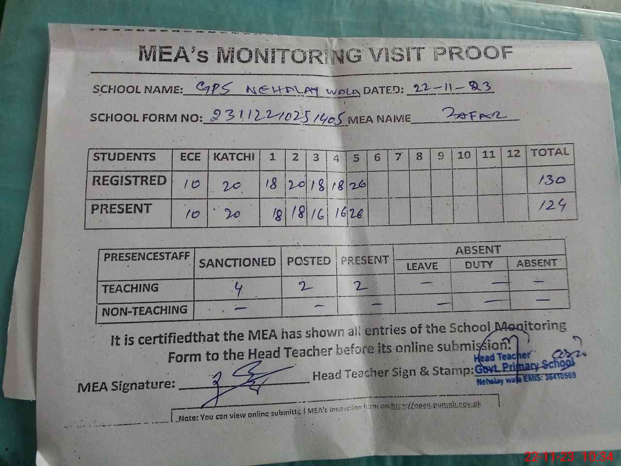 | EMIS Code: 36410569 | Name of School: GPS NEHALAY WALA, ABDUL HAKIM | |||