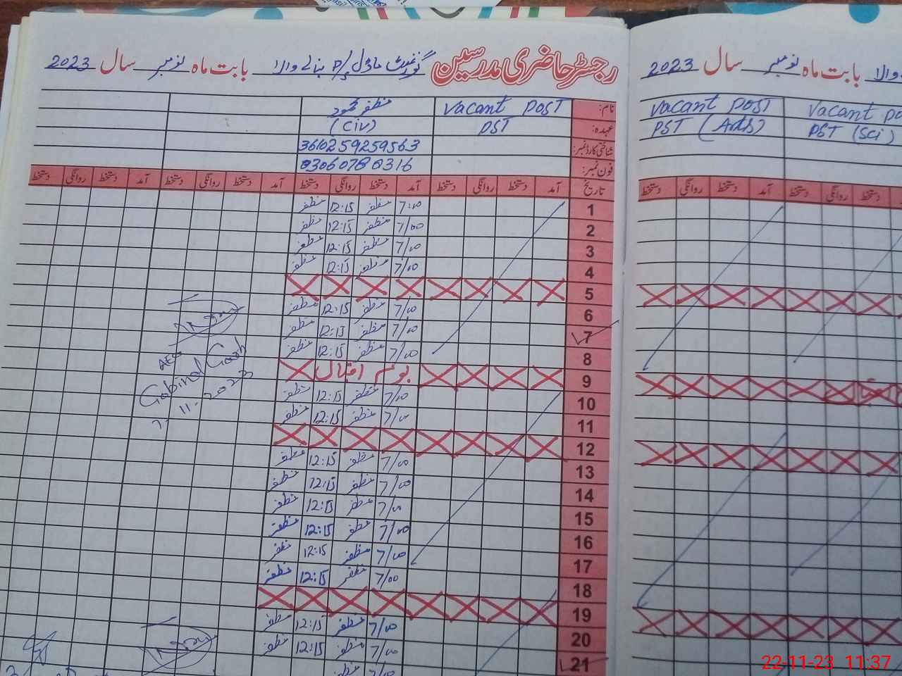 | Name: HA**** FA**** Designation: (School Headmaster's/Headmistress's) PST Phone/Cell Number: 03**** |