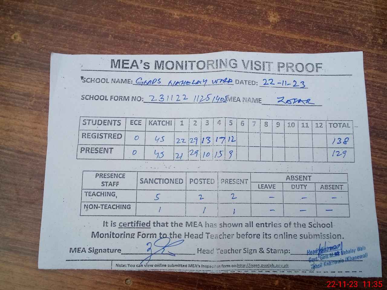 | EMIS Code: 36410439 | Name of School: GMPS NEHALAY WALA, ABDUL HAKIM | |||
