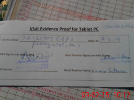 | Attendance Register | Head Teacher | MEA with School | Visit Proof |
