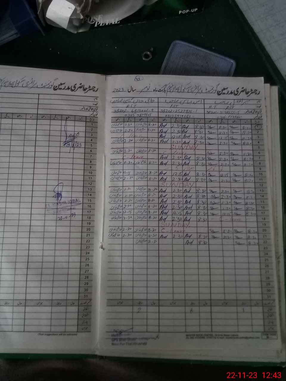 | Name: SH**** AF**** Designation: (School Headmaster's/Headmistress's) PST Phone/Cell Number: 03**** |