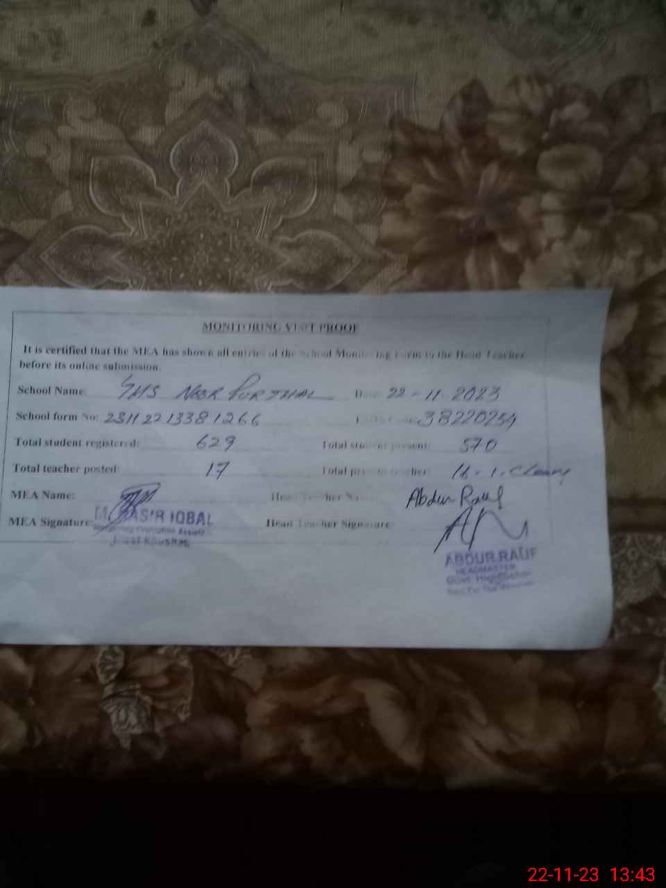 | EMIS Code: 38220254 | Name of School: GHS NOORPUR THAL | |||