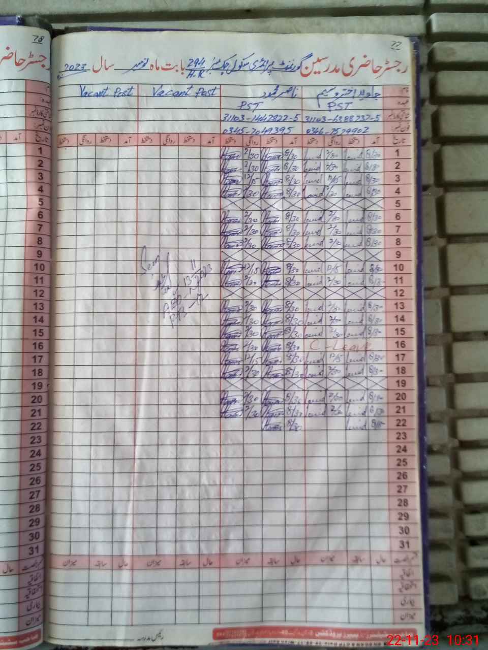 | EMIS Code: 31130223 | Name of School: GPS CHAK NO 294 HR | |||