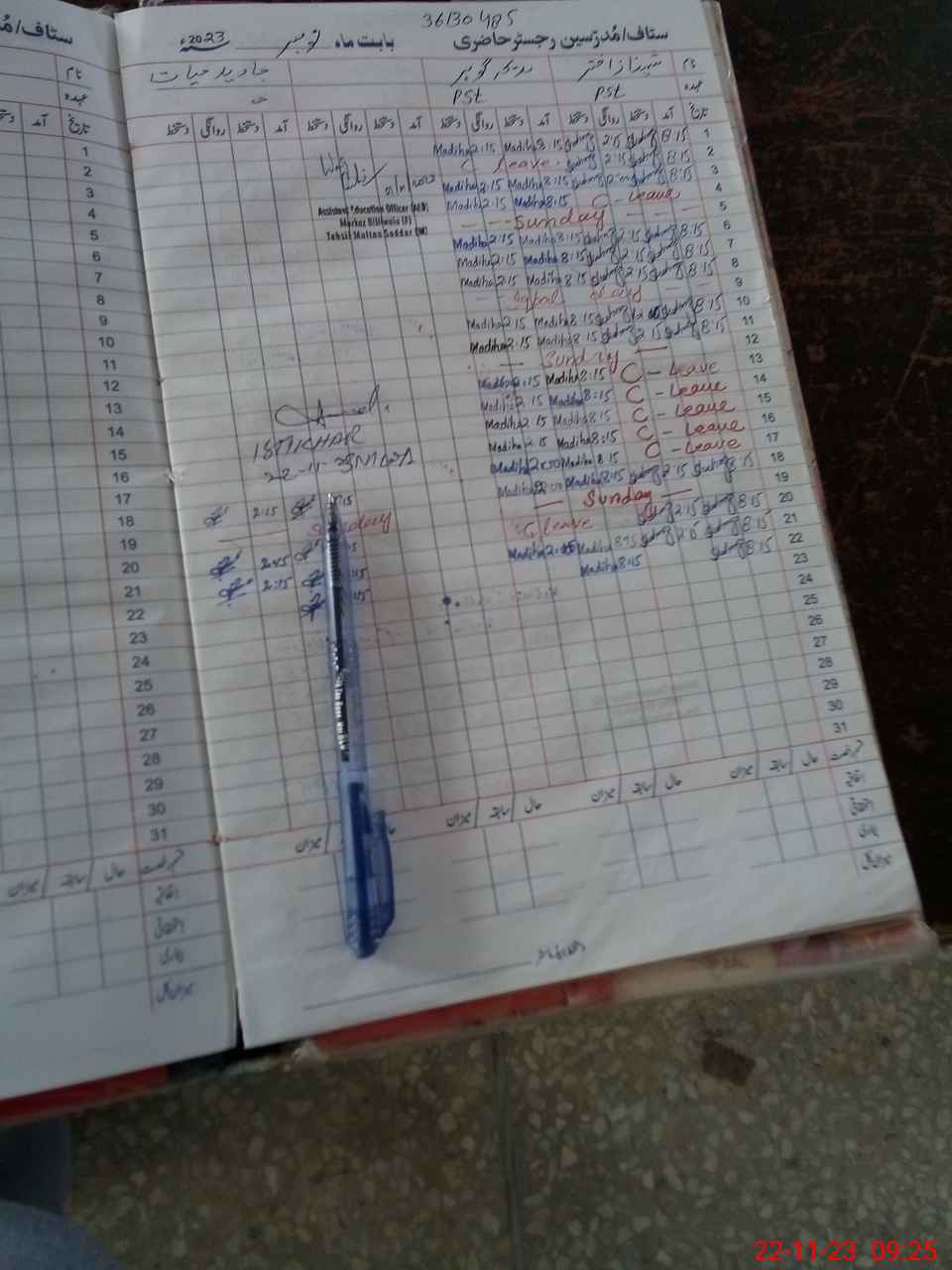 | Name: SH**** AK**** Designation: (School Headmaster's/Headmistress's) PST Phone/Cell Number: 03**** |