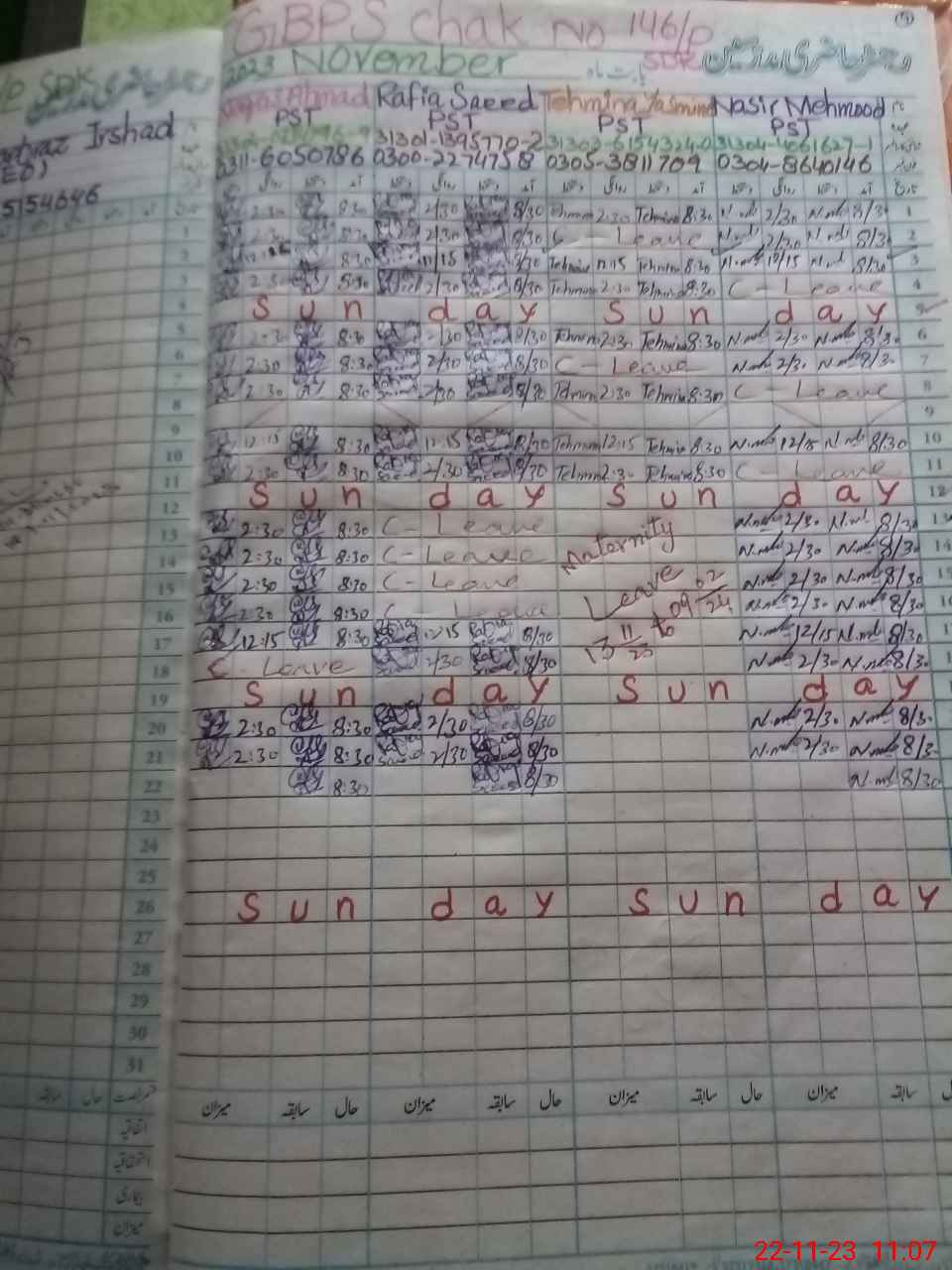 | CNIC | Full Name | Designation | R/C | Absence During Last Calender Month |