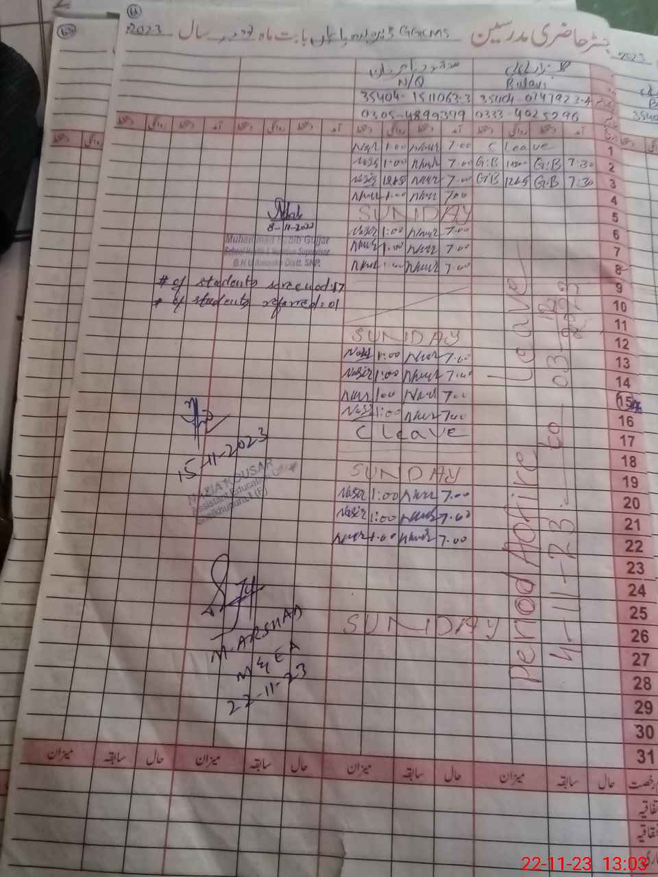 | Name: SH**** Ak**** Designation: (School Headmaster's/Headmistress's) PST Phone/Cell Number: 03**** |