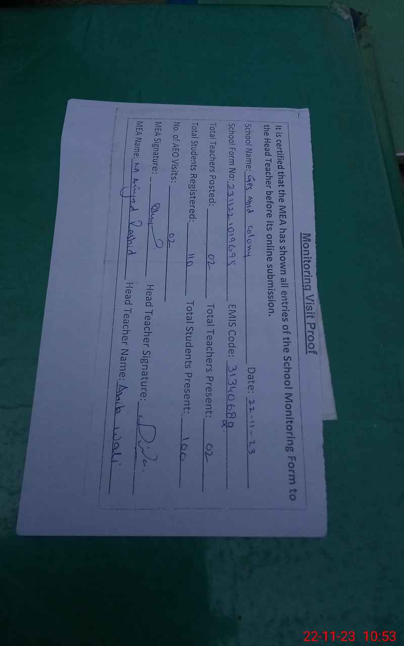| EMIS Code: 31340682 | Name of School: GPS ABID COLONY | |||