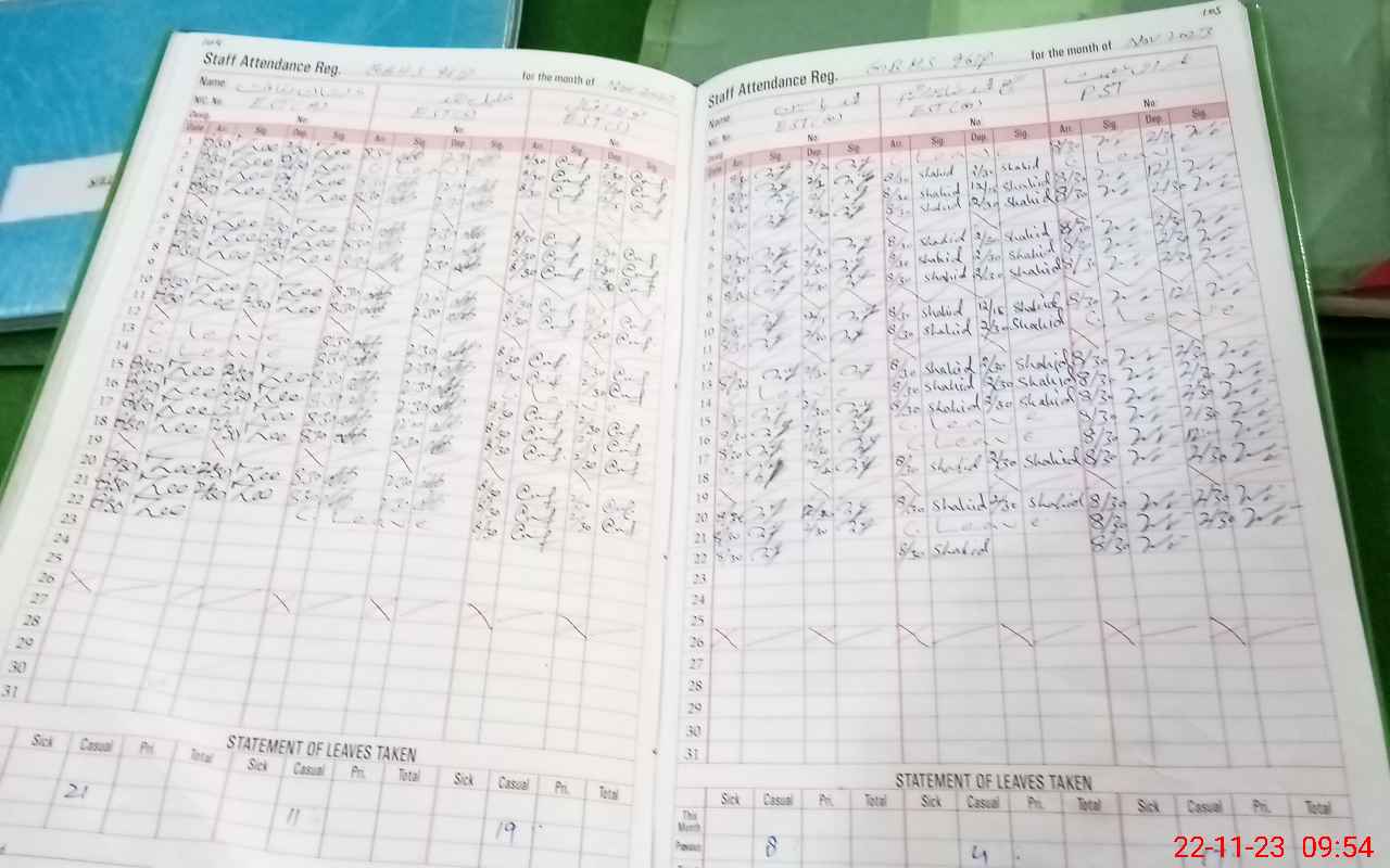 | CNIC | Full Name | Designation | R/C | Absence During Last Calender Month |