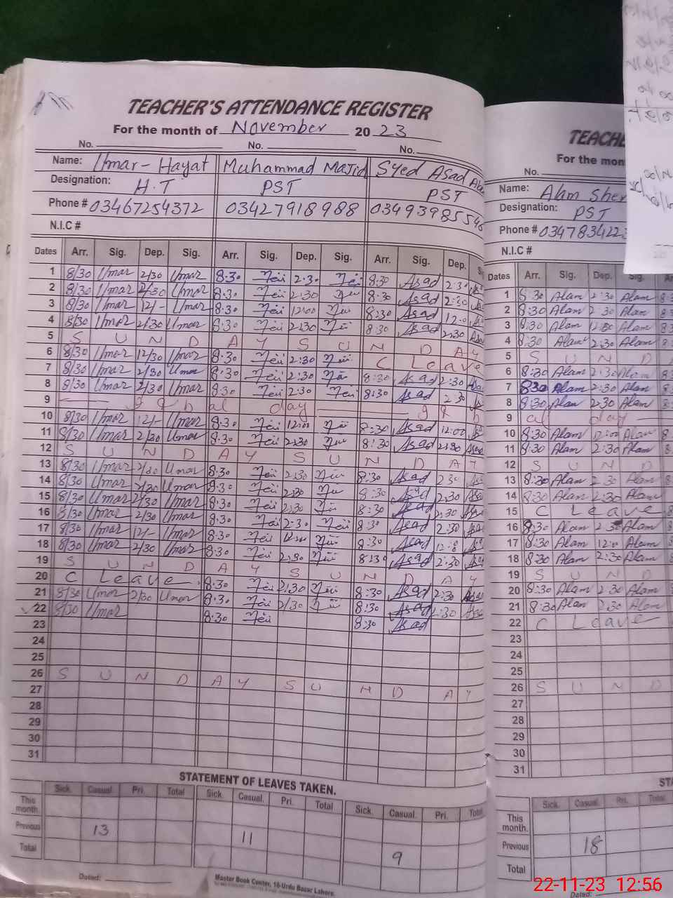 | Name: Um**** Ha**** Designation: (School Headmaster's/Headmistress's) PST Phone/Cell Number: 03**** |