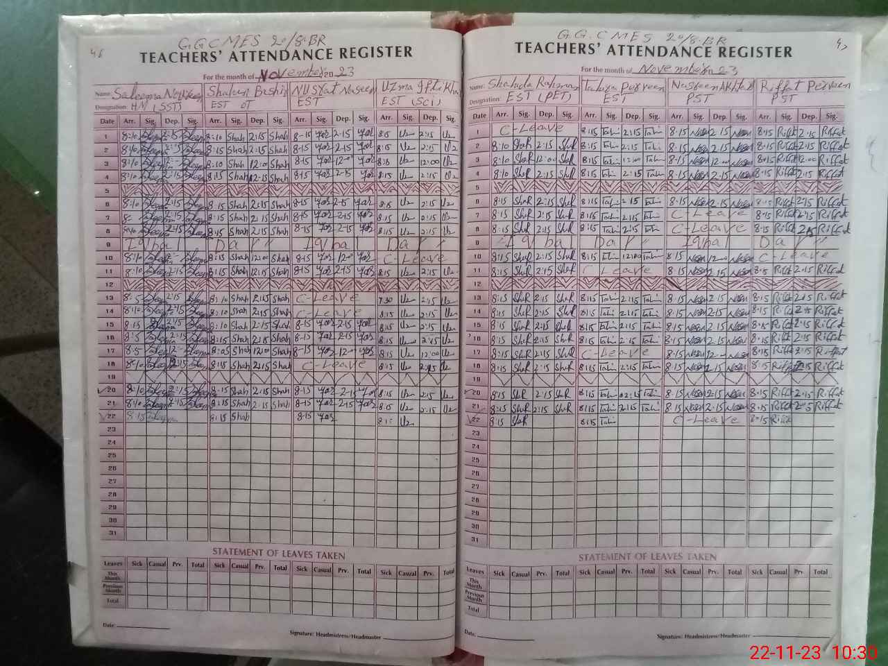 | CNIC | Full Name | Designation | R/C | Absence During Last Calender Month |